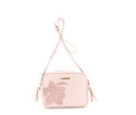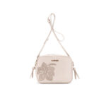 Borsa a tracolla Cafè Noir in materiale effetto pelle con applicazioni floreali Cipria