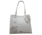 Borsa donna a spalla Cafè Noir Shopping Bag con applicazioni floreali Avorio
