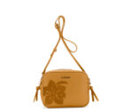 Borsa a tracolla Cafè Noir in materiale effetto pelle con applicazioni floreali Nocciola