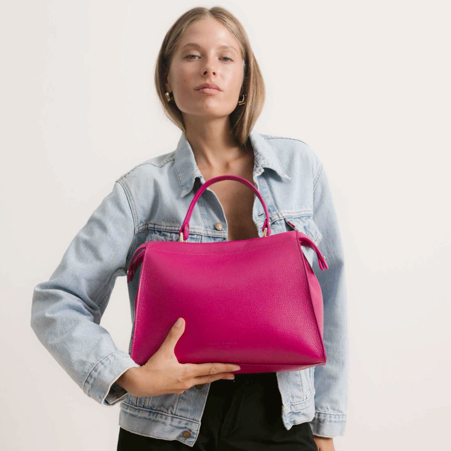 Borsa donna a mano Bianca Borghesi con tracolla in Pelle Fucsia. Made in Italy. Authentic Leather