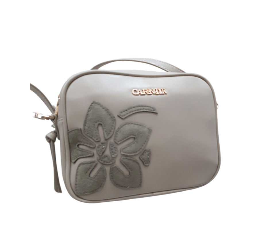 Borsa donna a tracolla Cafè Noir in materiale effetto pelle con applicazioni floreali Kaki